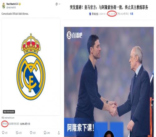 1月12日18点11分(北京时间13日1点11分),皇马官推发布了阿隆索下课的推特