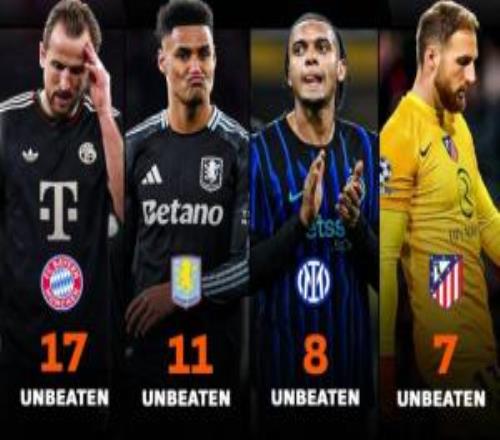 阿森纳本赛季先后终结拜仁17场不败、维拉11连胜、国米8场不败