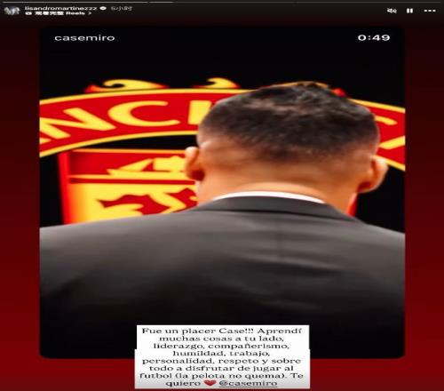 利桑德罗-马丁内斯通过社交媒体发文,向即将在赛季结束后离开曼联的队友卡塞米罗致以深情告别,表达敬意与不舍之情。